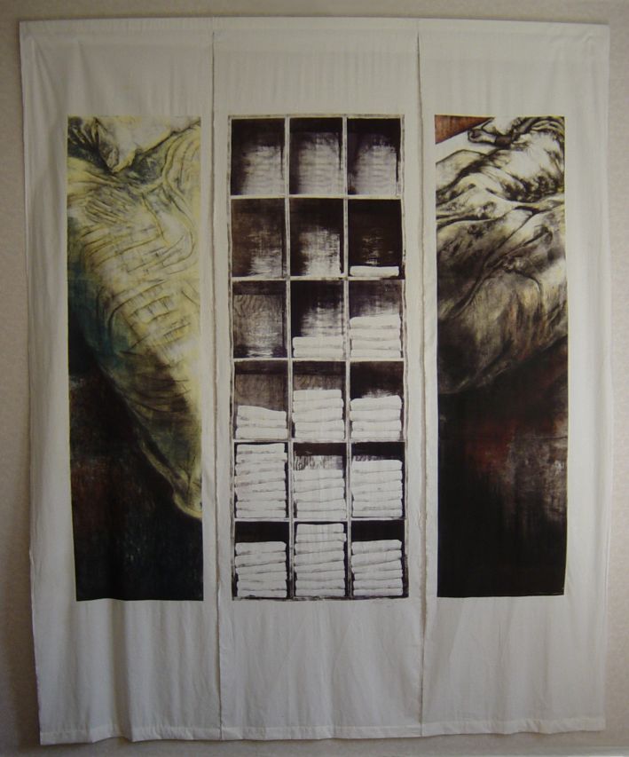 Linen Cupboard series. The left panel shows an empty creased bed.